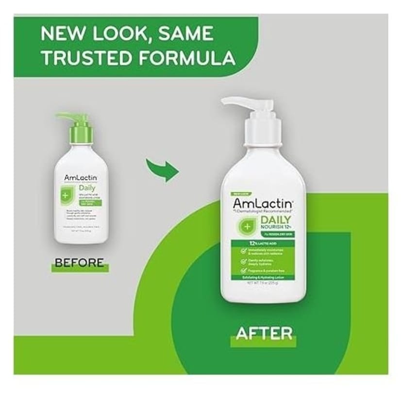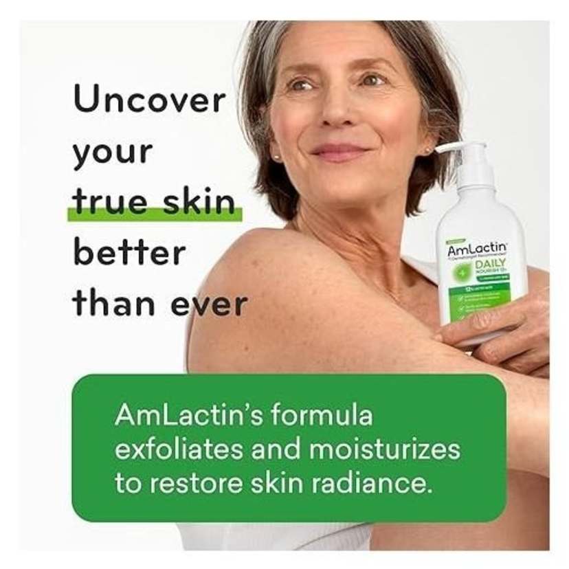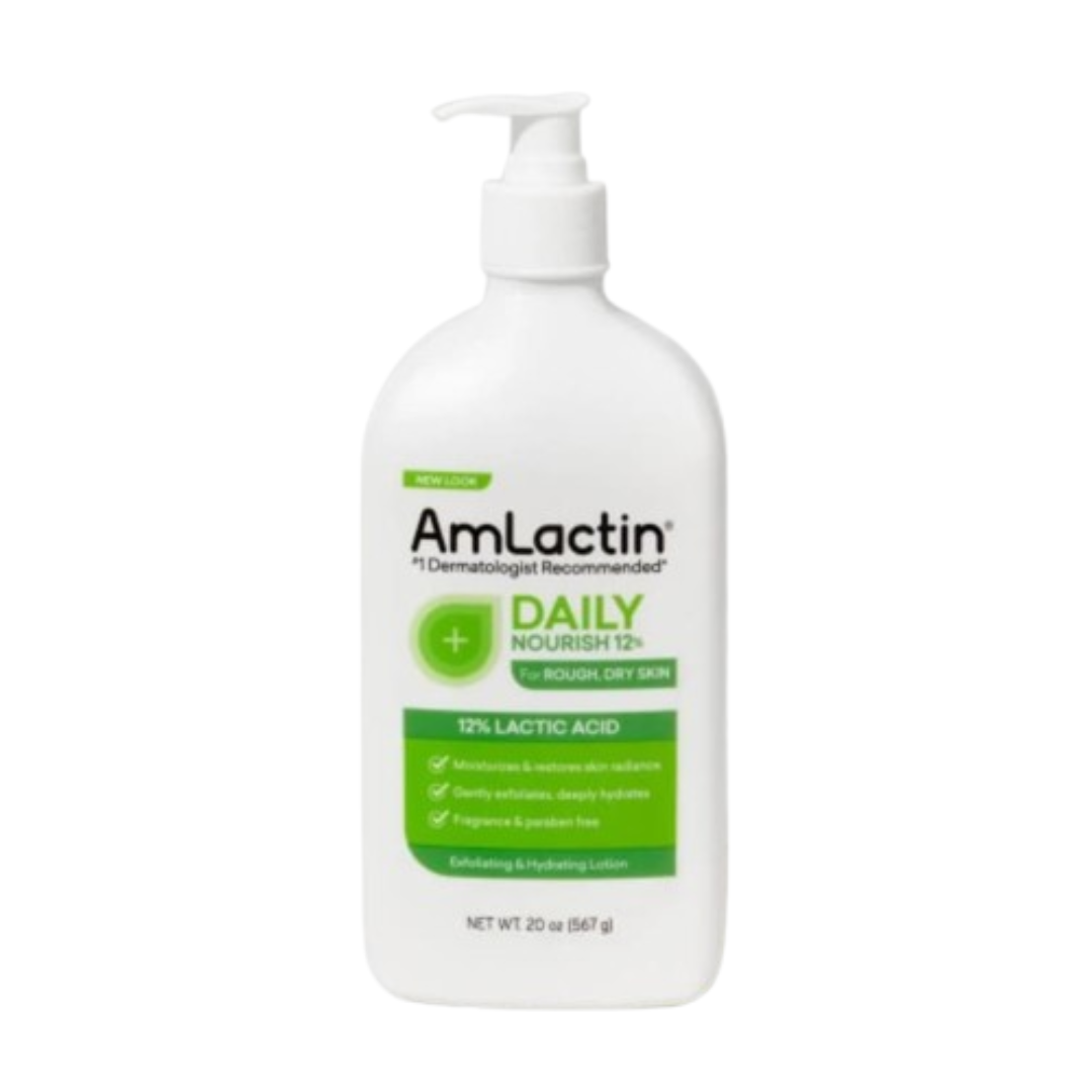 Amlactin Daily 12% Lactic Acid Moisturizing Lotion 20oz 567g Amlactin Moisturizing Body Lotion 20oz  contain the powerful Alpha-Hydroxy Therapy to gently exfoliate and deeply hydrate rough, dry skin. Our therapeutic moisturizers feature lactic acid, an Alpha-Hydroxy Acid (AHA), which occurs naturally within the skin, as well as rich emollients and creamy humectants that hydrate and smooth rough, dry skin. Amlactin Moisturizing Body Lotion 7oz  contain the powerful Alpha-Hydroxy Therapy to gently exfoliate and deeply hydrate rough, dry skin. Our therapeutic moisturizers feature lactic acid, an Alpha-Hydroxy Acid (AHA), which occurs naturally within the skin, as well as rich emollients and creamy humectants that hydrate and smooth rough, dry skin.